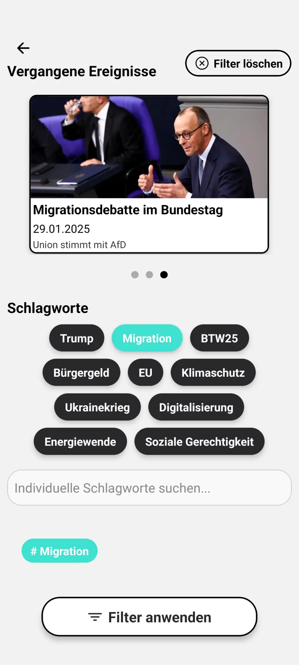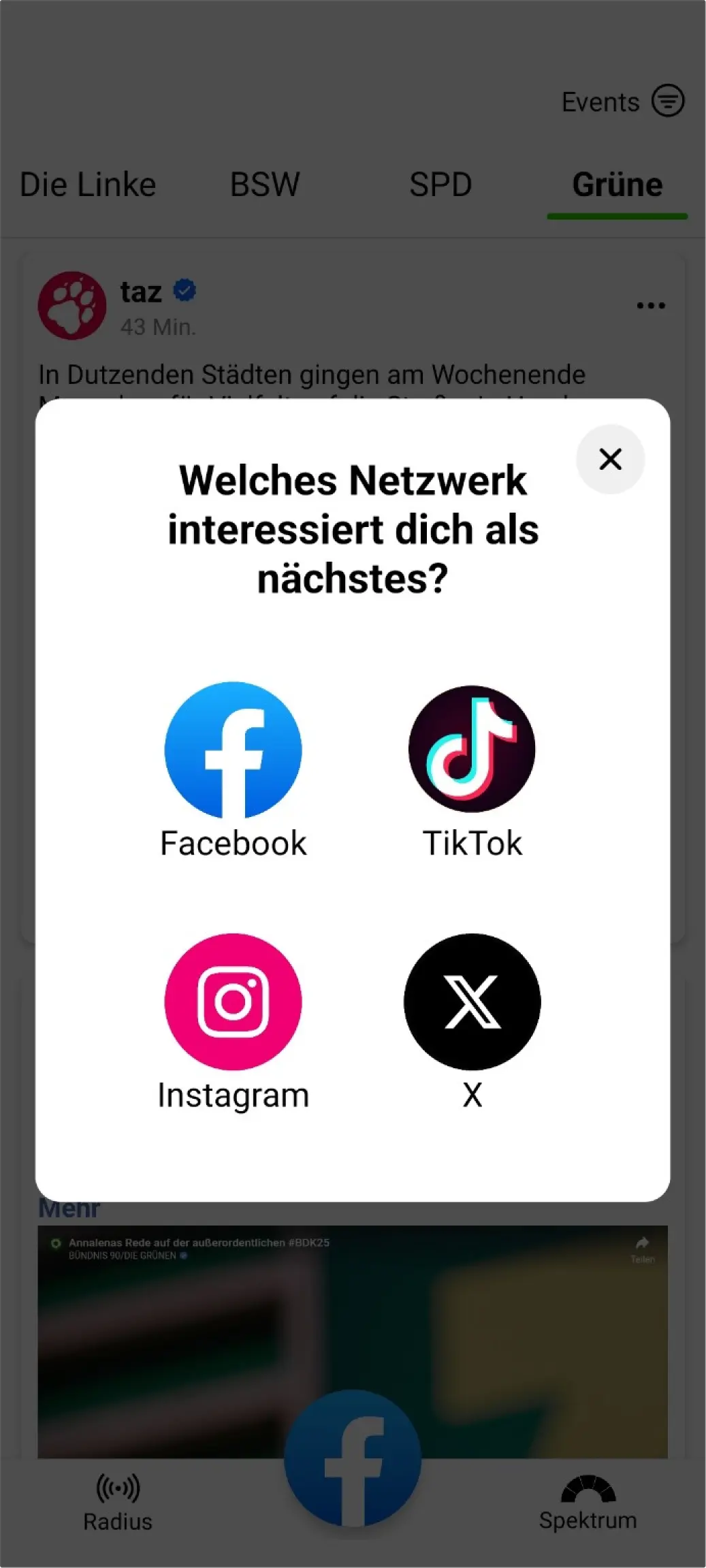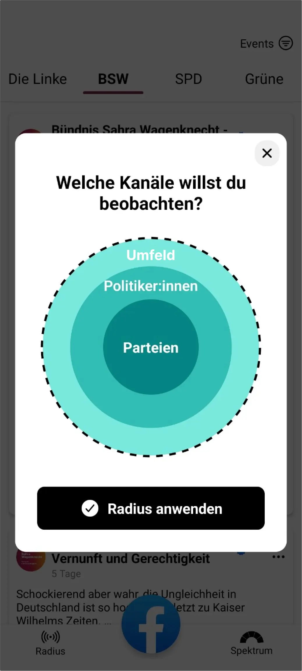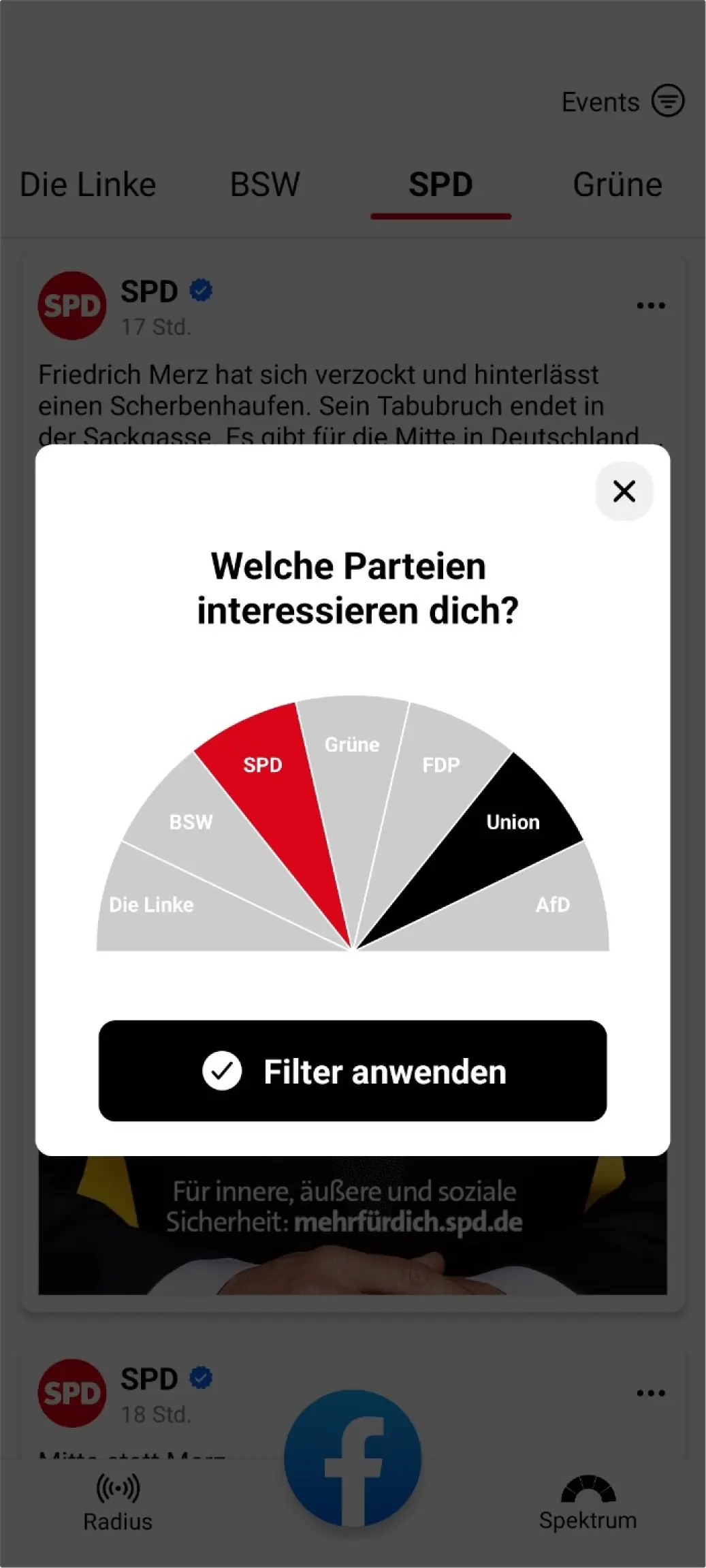 Per Swipe zwischen den Informationswelten des gesamten politischen Spektrums hin und her wechseln.
